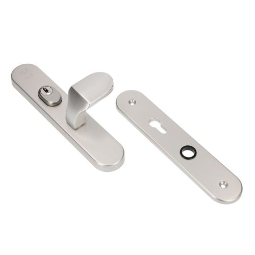 Productclassificatie: Hang- en Sluitwerk - Bouwbeslag - Veiligheidsbeslag - Veiligheids garnituren SKG*** - Kruk-knop schild met kerntrekbeveiliging aluminium