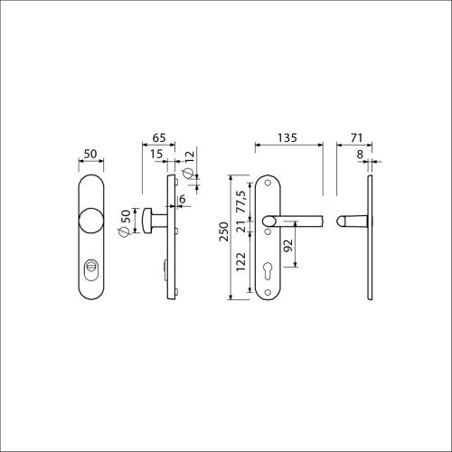 Productclassificatie: Hang- en Sluitwerk - Bouwbeslag - Veiligheidsbeslag - Veiligheids garnituren SKG*** - Kruk-knop schild met kerntrekbeveiliging aluminium