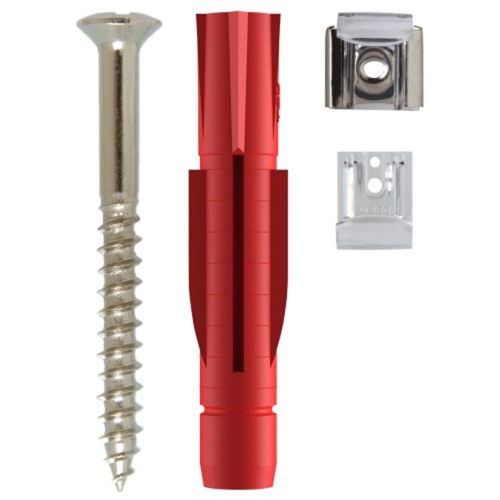 Bevat: De set bevat 4 schroeven, 4 pluggen en 4 klemmen